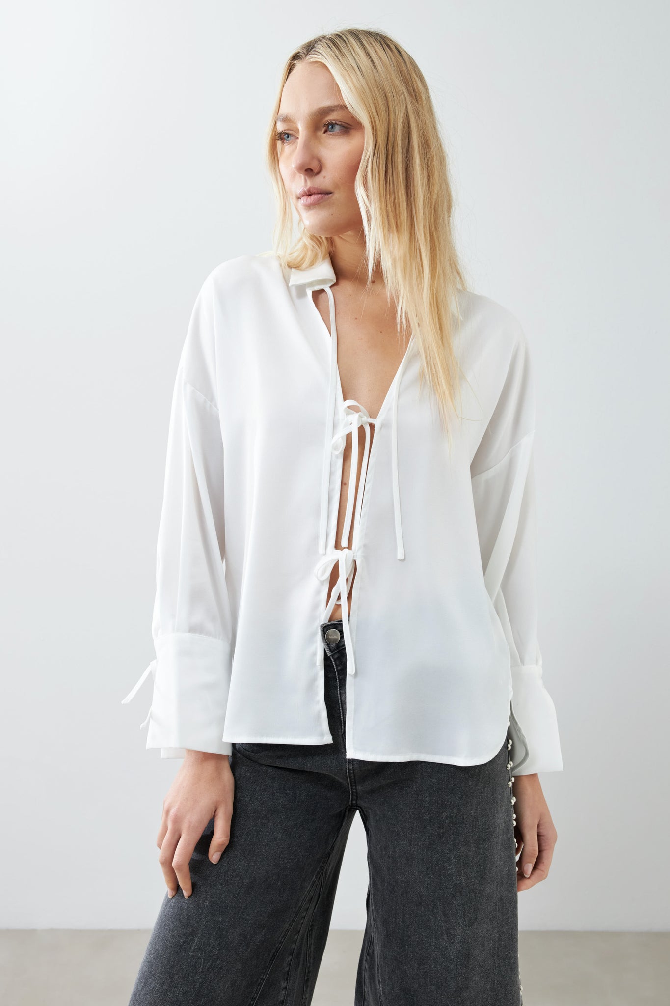 CAMISA SATIN CON LAZOS