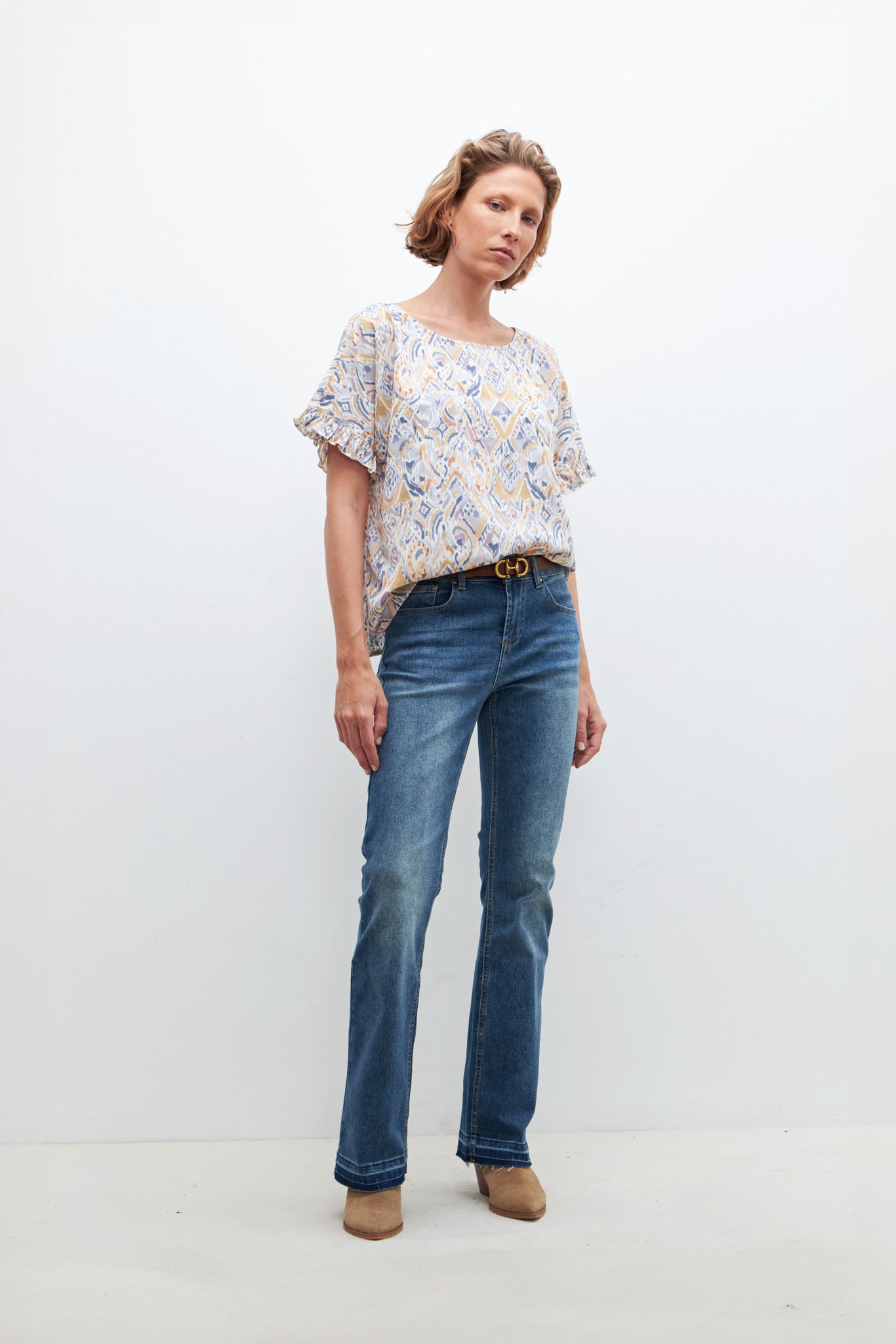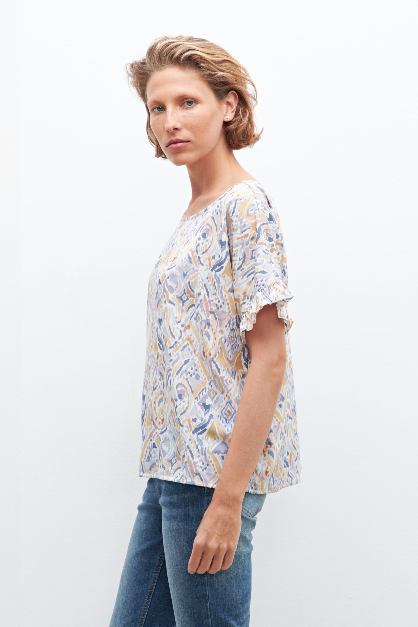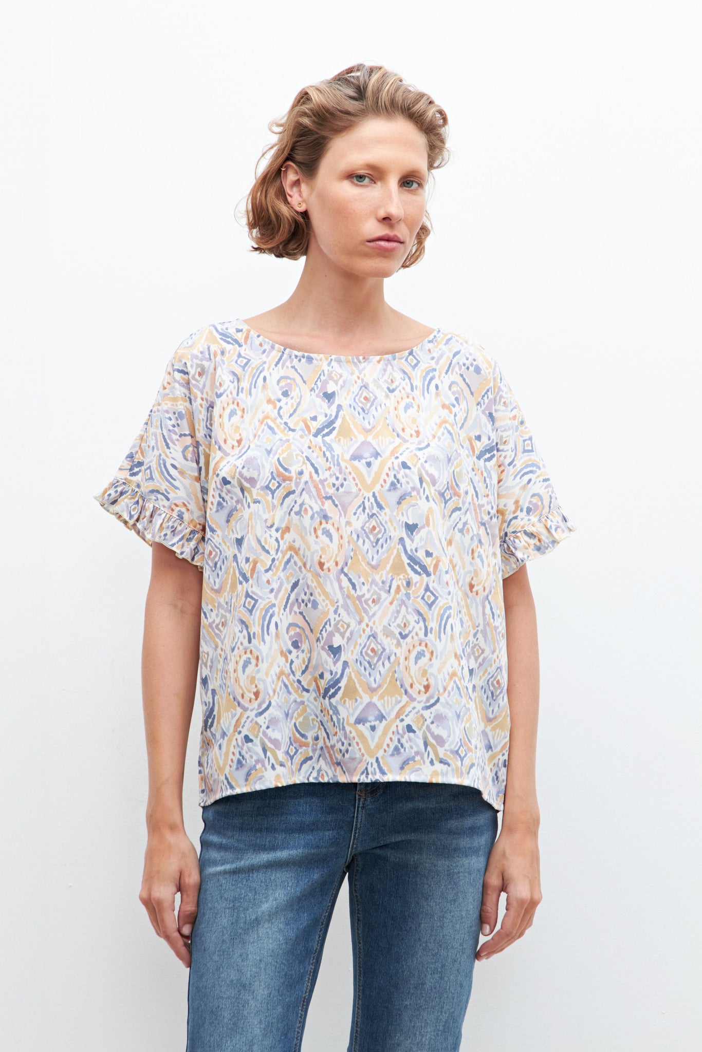 BLUSA ESTAMPADA CON VOLADOS